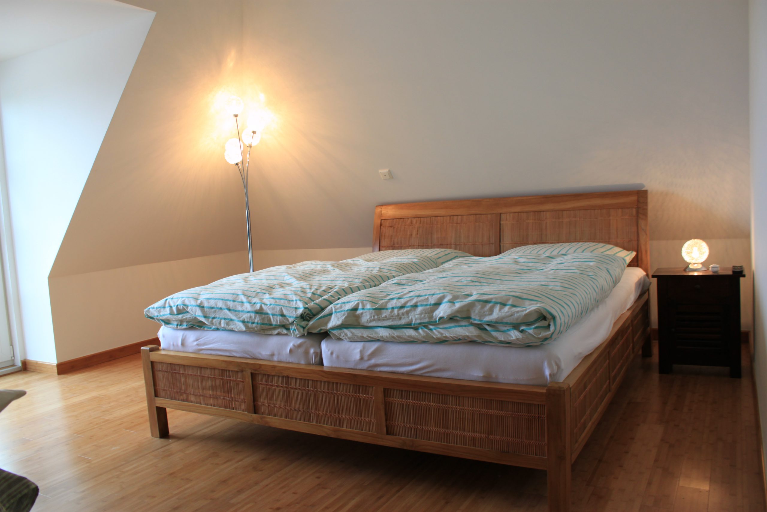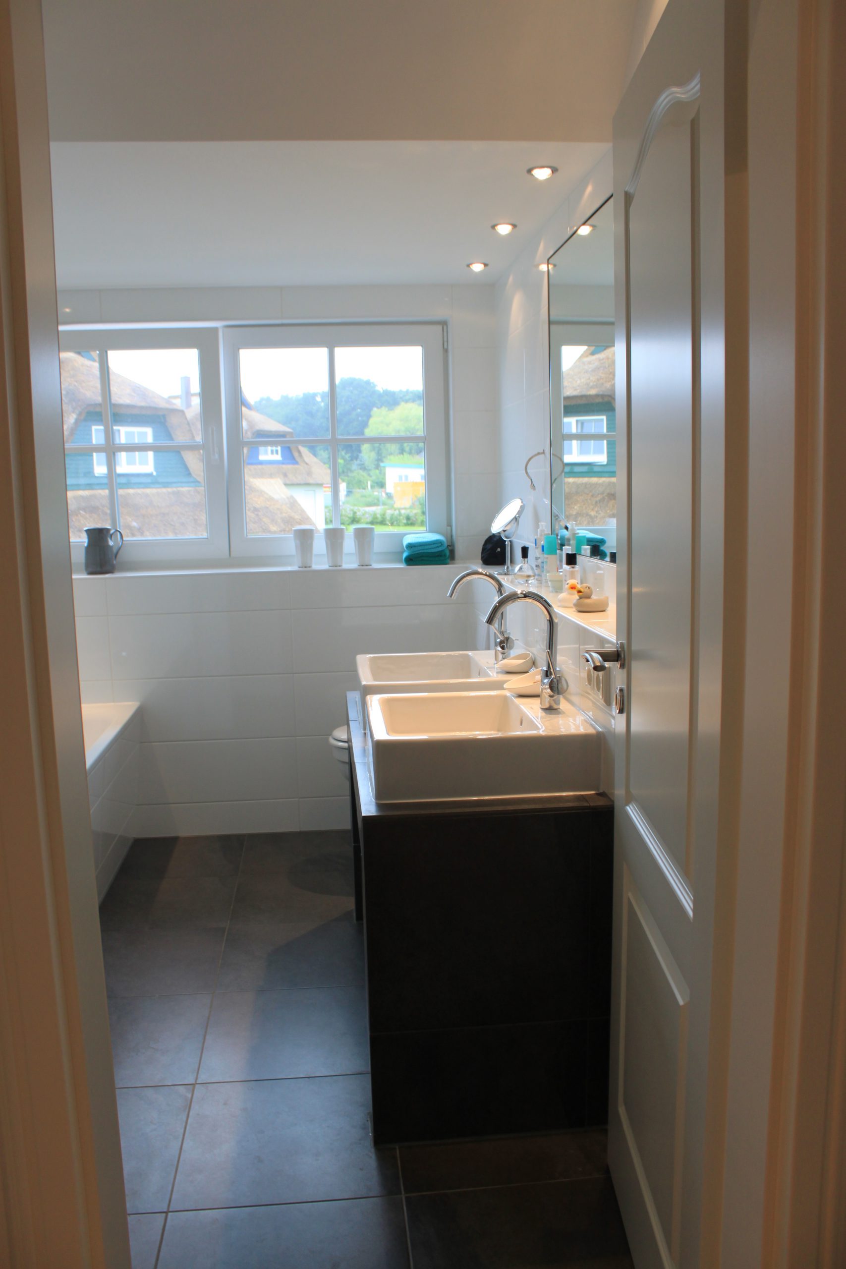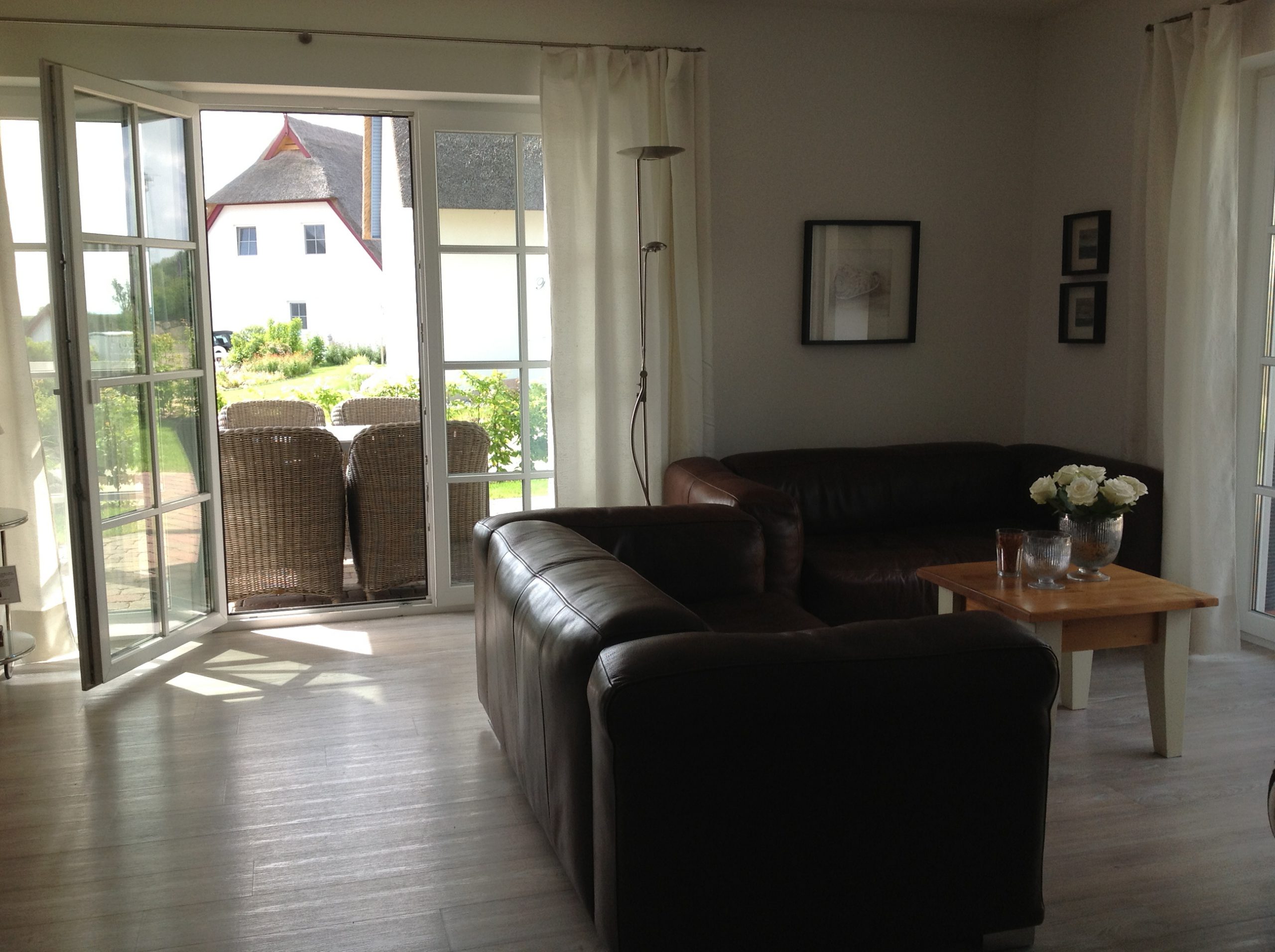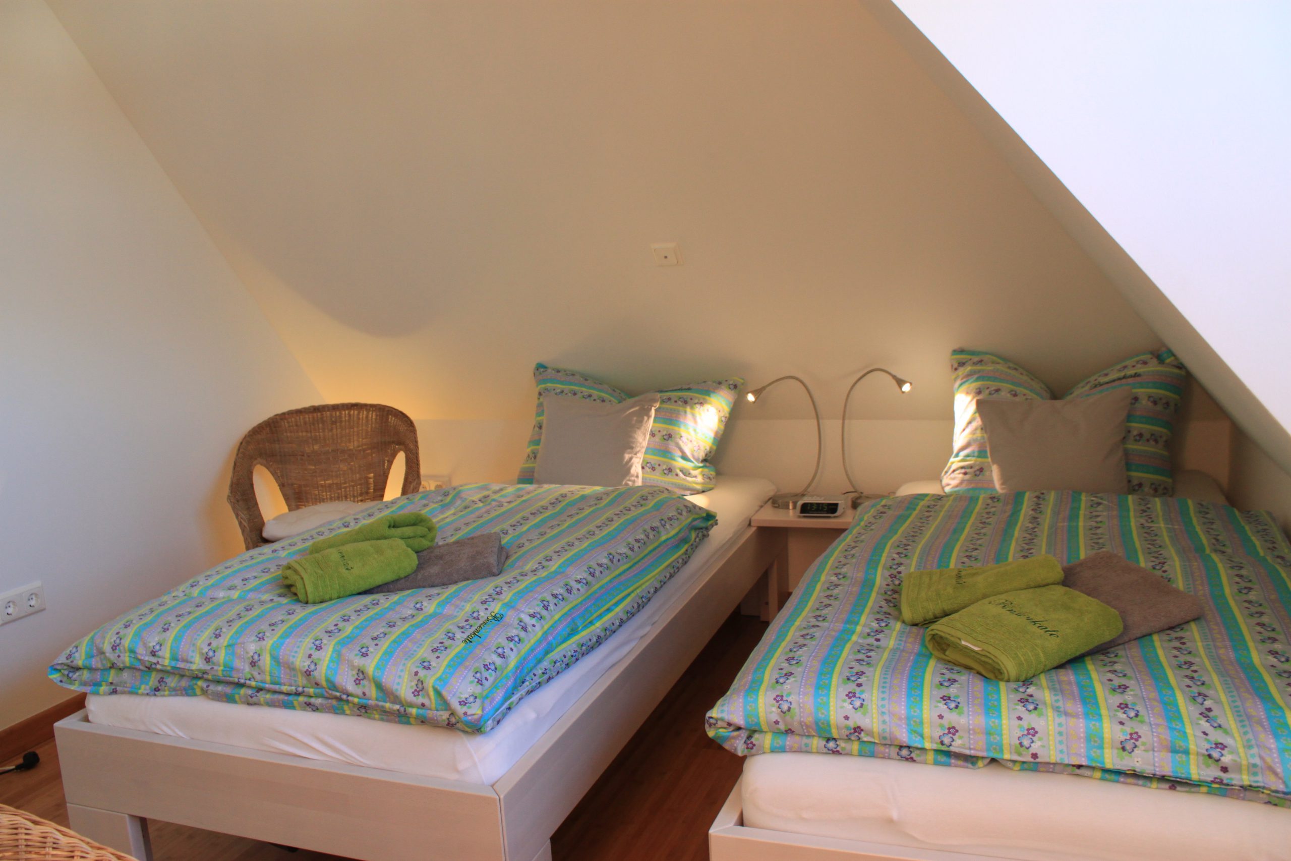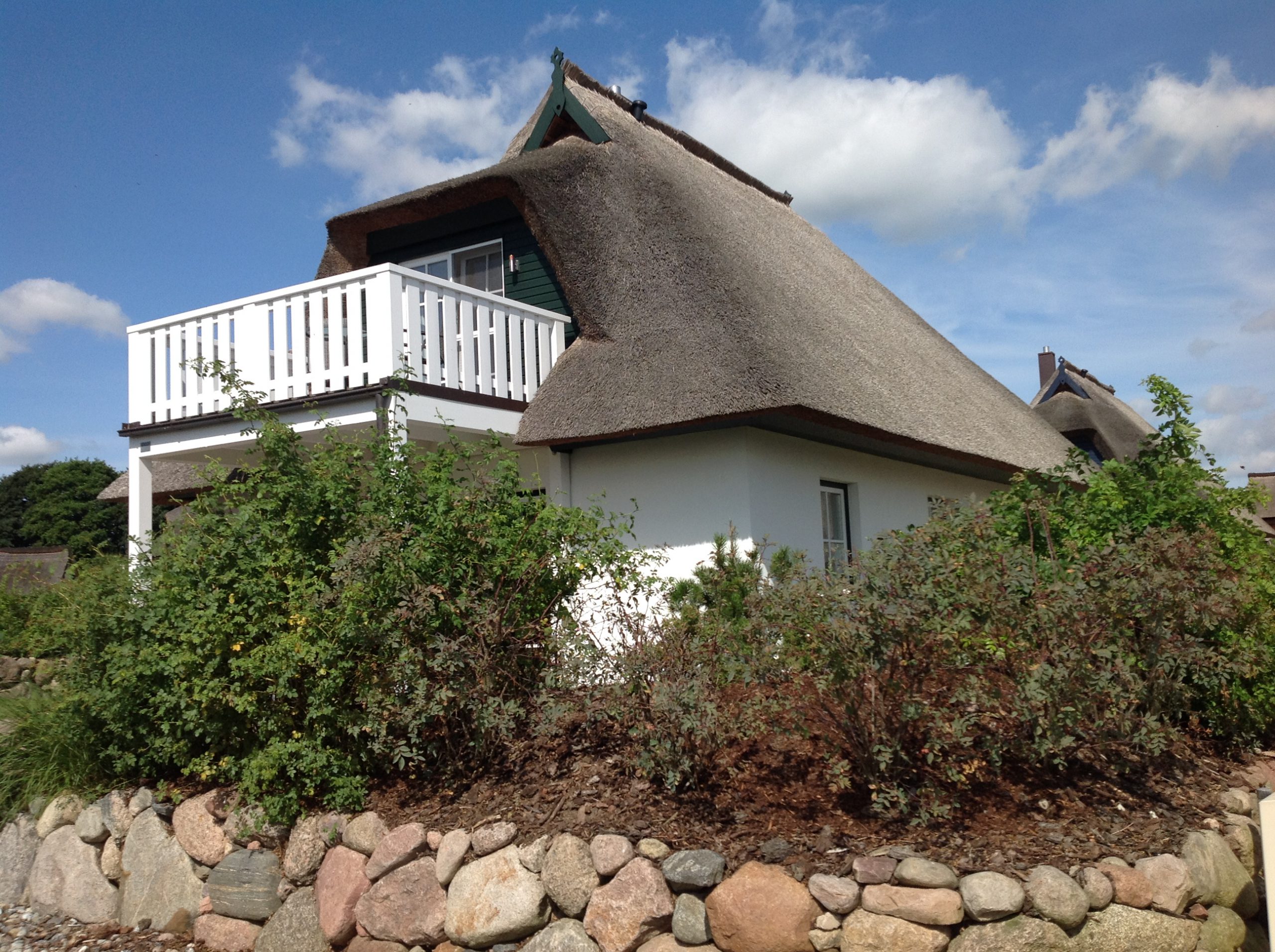 Das Haus ist so eingerichtet, dass 6 Personen und 1-2 Kleinkinder zusammen sein können und sich doch jeder in seinen Bereich zurück ziehen kann. Jeder Raum ist mit einem Flachbildschirm und gemütlichen Sitzgelegenheiten ausgestattet. Das „Gartenzimmer“ im Erdgeschoss hat einen direkten Zugang zu Garten und Terrasse. Das Familienzimmer im Obergeschoss verfügt über einen großen Balkon mit Blick auf das Achterwasser, 2 moderne und gemütliche Sessel, einen kleinen Schreibtisch und einem Kinderbettchen, das Schlafzimmer daneben verfügt über zwei Einzelbetten, die auch zusammen gestellt werden können.